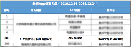2020年1月2日,教育部發布了第二批教育APP備案名單。名單顯示,希沃旗下產品——希沃易課堂通過備案。