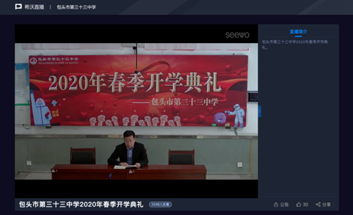 2020年2月16日上午10時,內蒙古包頭市第三十三中學迎來了一個“特別”的開學典禮。今天的開學典禮現場沒有鮮花,也沒有掌聲。散落在家的一個個師生,通過在線錄播,凝聚在了一起。但不變的是校長的殷切期望,老師們的孜孜不倦的教導和同學們即將和往常一樣學習到的新知。