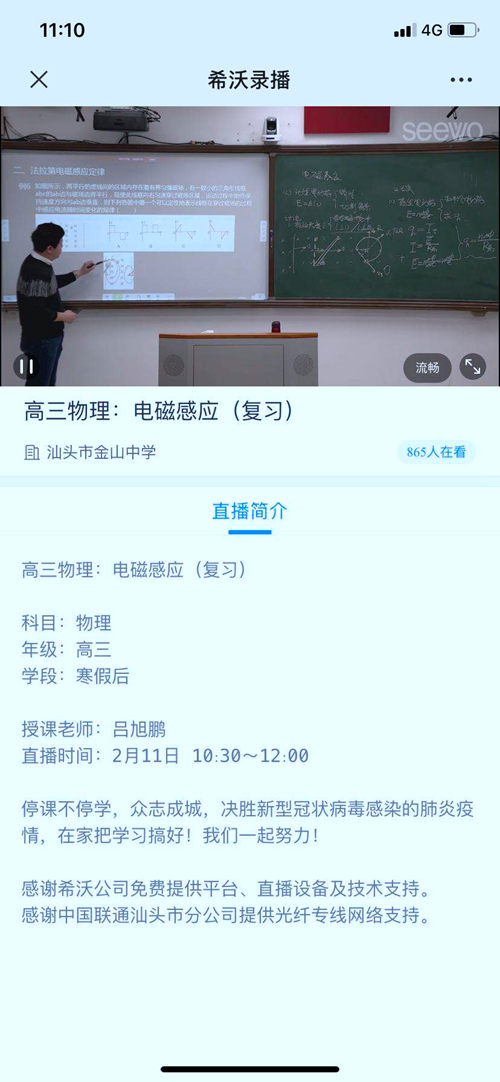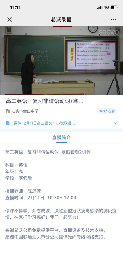 希沃錄播保障廣東汕頭金山中學“停課不停學”