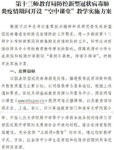 為全面做好疫情防控工作,教育部1月27日下發2020年春季學期延期開學的通知�;诖�,新疆建設兵團第十三師教育局部署“防控新型冠狀病毒肺炎疫情期間開設‘空中課堂’教學實施方案”,希沃迅速展開行動,為新疆建設兵團十三師的教育主管部門及學校提供希沃云課堂方案,幫助教師提前掌握線上授課能力,為開展“空中課堂“做好準備。