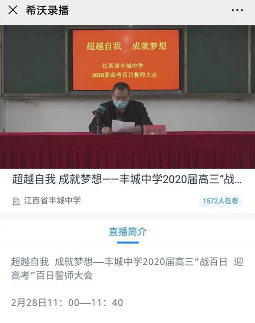 日月于征,風雨同行;寒來暑往,追夢不停。在這特殊時期,學校不得不延期開學。2月28日,豐城中學依托希沃錄播遠程課堂方案,以一種直播方式開展2020屆高三百日誓師活動,讓上千名學子同“屏”戰疫,該項活動點燃了高三學子的激情,吹響了沖刺的號角。