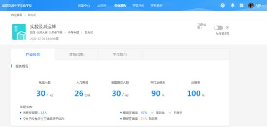 這段特殊的網課時期中,雙中實驗的師生們將希沃易課堂的「數據分析」模塊發揮得淋漓盡致。作業在經過「答題卡」的收集批改后,進入「數據分析」手中,一張張答題卡自動變成一個個數據,分門別類地為師生提供反饋。