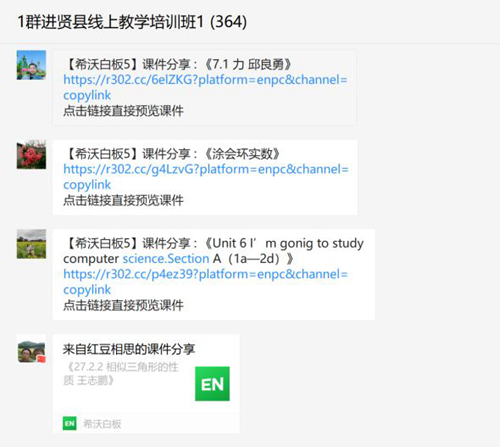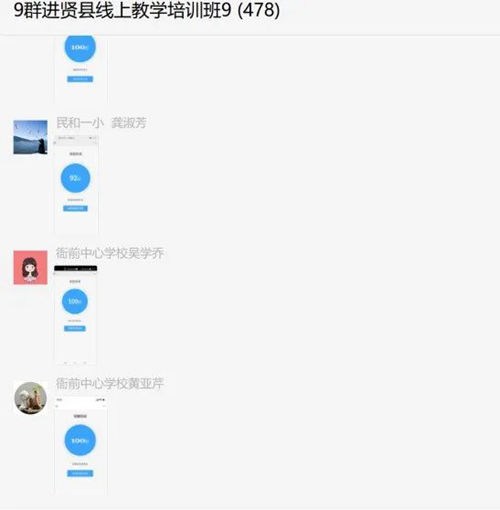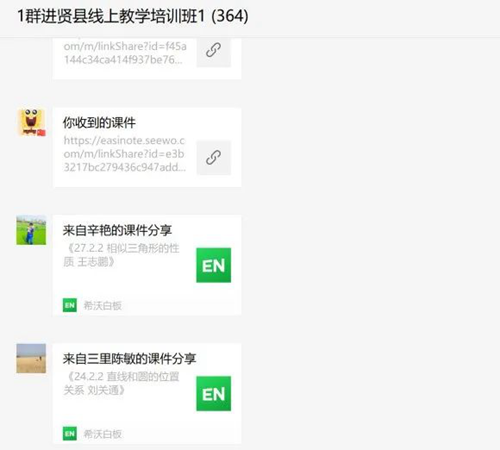 全縣參訓的5000余名教師被分流到11個臨時組建的微信群。每個群中,由希沃講師專門運營,并以直播教學、微信群交流答疑的方式進行培訓。參訓的教師們認真聽講、熱烈討論,課后及時進行實踐操作,按時完成每堂課的作業。尤其是很多年齡偏大的教師,對于這些現代化的教學手段不甚熟悉,但他們克服重重困難,好學好問,在希沃講師們的熱心幫助下,順利通過培訓考核。