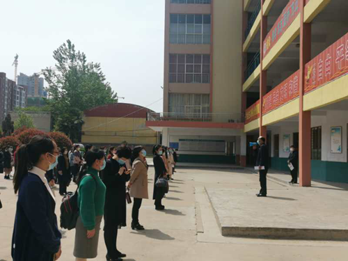 疫情期間,學校也積極采取措施,制定防疫期間的安全準則。4月14日,每位來參加培訓的老師入校時,都需要在校門口逐一進行體溫測量。現場掃碼填寫個人健康信息,并手寫簽名予以確認。