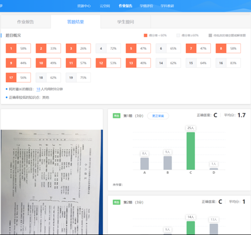 4.試卷分析詳細直觀:老師可以很清楚地了解哪些題目正確率較低,哪些學生近期在家學習效率較低等。