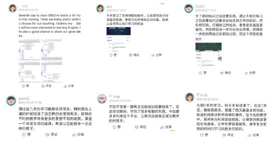 5月18日,線上培訓(xùn)正式開始,通過學(xué)習(xí)現(xiàn)代技術(shù)、聆聽專家講座、品賞經(jīng)典案例、交流各自所得,教師們足不出戶就可以享受希沃帶來(lái)的優(yōu)質(zhì)培訓(xùn)資源,開拓了一條通往專業(yè)發(fā)展的自主探索之路。