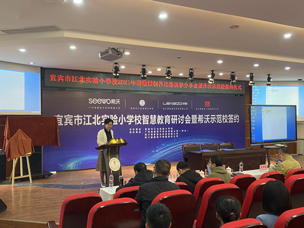 3月26日下午,智慧教育研討會暨希沃示范校簽約儀式在宜賓市江北實驗小學(xué)校翠微路校區(qū)學(xué)術(shù)報告廳舉辦。翠屏區(qū)十多所學(xué)校齊聚一堂,聆聽智慧教育的聲音,借助信息技術(shù)手段構(gòu)建智慧課堂,交流信息技術(shù)與學(xué)科教學(xué)深度融合的思路與方法。