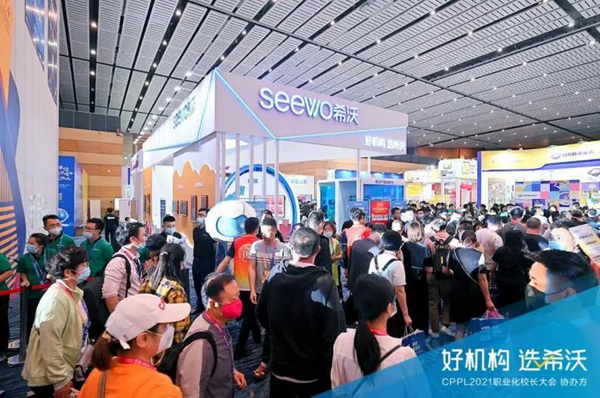 此外,為了讓用戶更充分了解希沃在教培領域的產品以及服務體驗,希沃于2021CPPL現場特意打造了沉浸式的品牌展區,分別設置希沃互動體驗區、校園文化展示等,全面展示希沃教培互動式場景解決方案。憑借著過硬的產品實力和優質服務體驗,希沃展區迅速成為現場人群焦點,眾多教培校長紛紛前來展區觀摩體驗、咨詢了解。為期3天的大會,希沃展區人氣異�;鸨�。