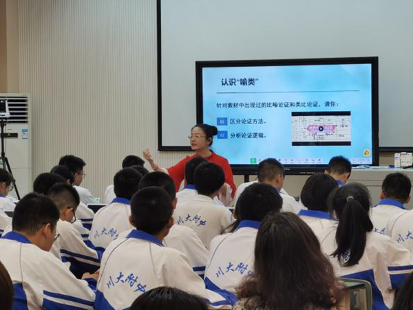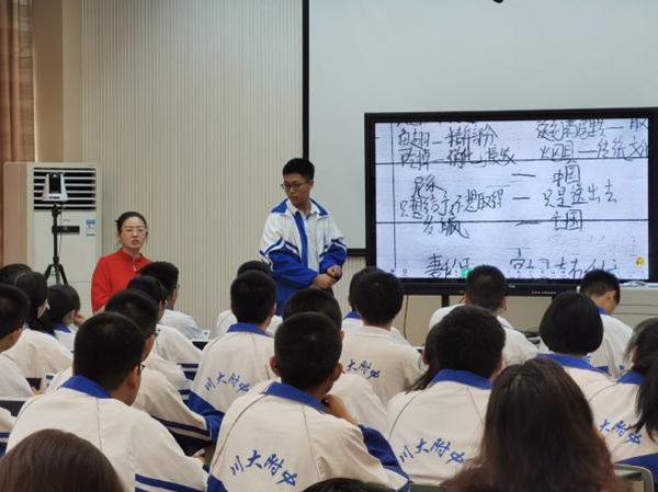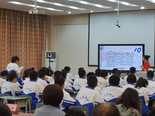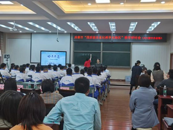 為深入貫徹落實(shí)《教育部關(guān)于公布“基于教學(xué)改革、融合信息技術(shù)的新型教與學(xué)模式”實(shí)驗(yàn)區(qū)名單的通知》文件精神,進(jìn)一步加強(qiáng)成都市“國(guó)家級(jí)信息化教學(xué)實(shí)驗(yàn)區(qū)”建設(shè),成都市教育局召開(kāi)了國(guó)家級(jí)信息化教學(xué)實(shí)驗(yàn)區(qū)教學(xué)研討會(huì)。本次研討會(huì)特別邀請(qǐng)了湖南省長(zhǎng)沙市長(zhǎng)郡中學(xué)語(yǔ)文組肖楊老師,來(lái)到四川大學(xué)附屬中學(xué)進(jìn)行公開(kāi)課展示及研討分享。