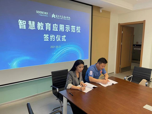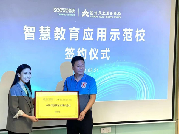 瀘州天立春雨學(xué)校楊兵校長(zhǎng)同希沃學(xué)務(wù)事業(yè)部全國(guó)運(yùn)營(yíng)顧問馮智慧完成智慧教育應(yīng)用示范校合作簽約。