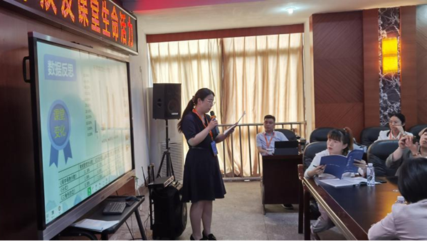 希沃學務事業(yè)部教研顧問劉璐,就宜賓六中的智慧課堂教研服務推進、教研初顯成效以及共促教學發(fā)展等三方面內(nèi)容,結(jié)合本校實際案例進行了分享。她指出,希沃易課堂教研資源的持續(xù)投入,為學校帶來了教育教學研討機制完善的改變;為老師帶來了教學與信息技術(shù)深度融合的改變;為學生帶來了輕松學、高效用的改變。希沃也將持續(xù)助力學校智慧教學探索與教育開展,讓信息技術(shù)更好服務于教學。