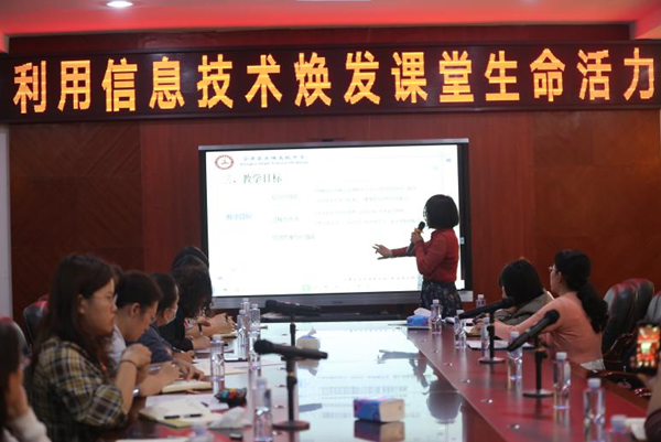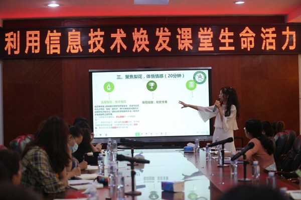 每一位老師的分享都引人深思,獲得在場老師們的連連喝彩。到場的其他老師們也積極上臺參與說課、評課,參會的老師們深刻感受到信息技術(shù)給課堂帶來的改變。朱京曦博士也高度肯定了6位老師的說課內(nèi)容和方式。