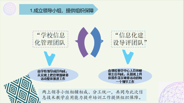 北京師范大學石家莊附屬學校張萌老師,針對本校教師信息化能力培養(yǎng)與工作技能提升作出分享和總結(jié)。