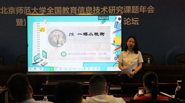 隨后,宜賓市第六中學涂萬敏老師帶來了智慧課堂《一顆小桃樹》。她通過運用希沃易課堂的相關功能,把課前預習、課堂活動、反思提升等環(huán)節(jié)有機整合起來,并設計互動游戲環(huán)節(jié)來進行教學,實現(xiàn)了良好的師生互動和生生互動,激發(fā)了學生學習的興趣和積極性,有效地提升了課堂效率,贏得了大家的一致好評。