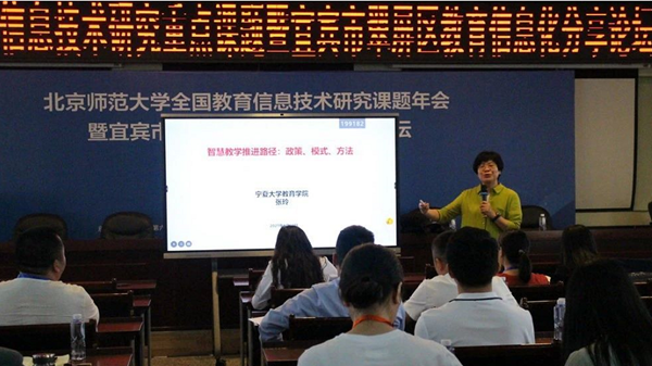 接著,寧夏大學教育學院教授張玲,為大家?guī)怼吨腔劢逃七M路徑:政策、模式、方法》專題講座。張教授通過梳理中國互聯(lián)網(wǎng)發(fā)展的脈絡以及國家政策對教育變革的引領,分析了信息技術(shù)對教育發(fā)展的推動作用,指出要在探索信息技術(shù)與教育教學的深度融合過程,提升現(xiàn)代教育能力水平。張教授還對構(gòu)建智慧教育生態(tài)框架進行了深刻的詮釋。