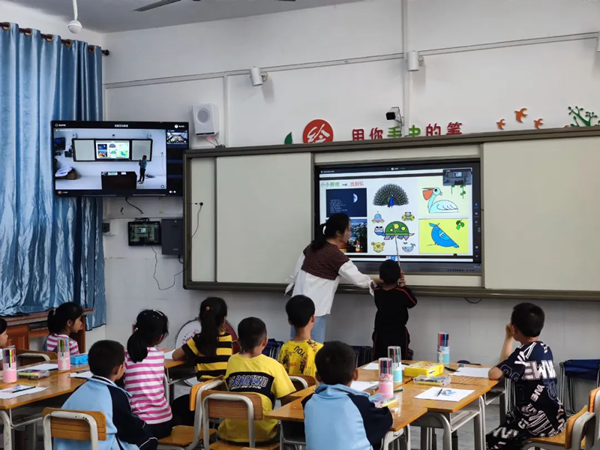 活動進行到下午,在王秀雨教師與何艷紅教師的帶領下,天峨縣第六小學與天峨縣平臘村小學共同呈現了一堂精彩紛呈的互動式專遞課堂展示課例,現場共有四十余名骨干教師以及相關領導觀摩研討,天峨縣教育局教研室韋名忠主任和藝術教研員莫茉老師在課后都對兩節示范課進行的評課點評,為天峨縣三個課堂的開展提供了生動的案例和有效的借鑒。針對不同地域的學生,通過互動式專遞課堂的方式,達到極致的師生共融、品效共生的效果。