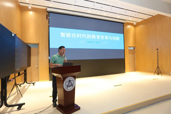 山東省智慧教育研究院李逢慶院長對智慧課堂政策進行了解讀,主要以智能化時代的教育變革與創新為主題,延伸當前教育信息化、智能時代教學變革、信息技術與教學融合創新三個部分,提出融合是實現教育教學流程再造與結構重組的關鍵,簡單介紹“三個課堂”:專遞課堂、名師課堂、名校網絡課堂,而教育的規律自始至終都是因材施教,從‘一刀切的傳統教學模式’變革成為‘個性化數字化學習’,實現教育公平,提升教育質量。