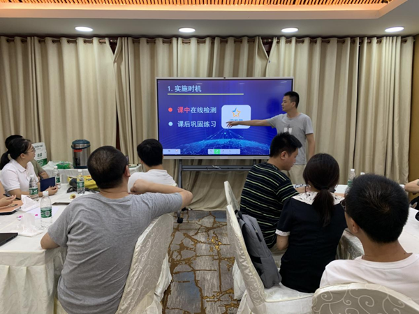 7月11日,老師們更是從不同學(xué)科、不同階段、不同學(xué)科工具等方面著手,運(yùn)用各種媒體技術(shù)展示了“B6技術(shù)支持下的展示交流”、“A6技術(shù)支持的課堂講授”、“A5技術(shù)支持的課堂導(dǎo)入”等課例分析。