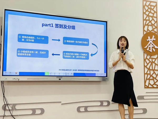 7月21日上午,陳小蝶老師帶來了《交互課件制作技巧》的分享課程。在分享過程中,陳老師一邊演示一邊講解,并讓現(xiàn)場老師對希沃白板的蒙層、思維導(dǎo)圖、課堂互動(dòng)、動(dòng)畫等制作工具進(jìn)行實(shí)操演練。參訓(xùn)的包老師說“這節(jié)課程都是滿滿的干貨,讓我了解了什么是‘裸課’,更進(jìn)一步掌握希沃軟件的使用,為今后希沃白板的課件制作打下夯實(shí)的基礎(chǔ)”。