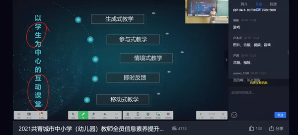 8月7日-8月8日為培訓的第一階段,在此培訓階段中,希沃金牌講師葉玉梅為參與培訓的老師們開展了為期兩天的線上直播授課環節和線上研修班開班儀式。其中,直播課內容圍繞《多媒體技術在信息化教學中的應用》《希沃白板-課件制作》《班級優化大師-班級管理》《微課錄制》等四個不同的課題展開。