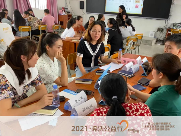2021年8月19日,希沃在環江毛南族自治縣第三小學舉行了希沃公益行設備捐贈儀式。同時,希沃攜手環江毛南族自治縣教育局,共同助力環江縣名師工作室骨干教師成員開展了為期兩天的“粵桂教育協作項目”研修班活動,讓骨干教師團隊就創造更多樣化教學模式展開了深度的研修和探討。環江毛南族自治縣教育局莫李全委員、電教站黃廣正站長、譚炤宇副站長、師培中心覃品優老師、林文強老師、環江三小校長羅懿校長、希沃廣西區域總經理郭寧等領導受邀出席了本次活動,并與教師們共同見證了環江毛南族自治縣信息技術名師工作室希沃聯絡站授牌儀式。