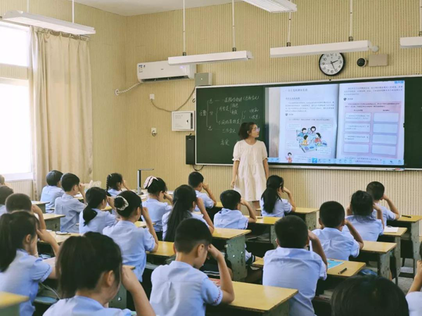 9月1日上午,船寮鎮小學教育集團的教室里傳來了朗朗書聲。五(2)班語文老師藍秀秀正處于新型教學空間內,使用全新設備給學生們上課。藍老師說:“對比之前的教學設備,使用希沃智慧黑板進行教學是一次全新的體驗。身為新時代背景下的教師,我們必須與時俱進,利用好信息化教學設備,才能更好地進行教學、服務學生。”