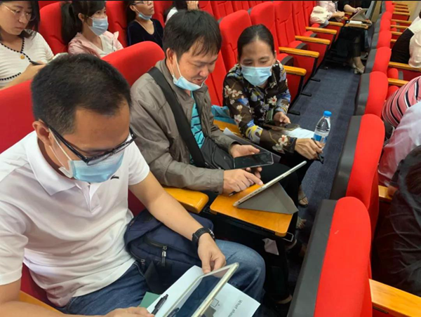 天涯區教育局教研室主任楊得伸上臺發表講話:“當前,教育信息化已經步入加快推進的黃金時期,也進入升級發展的關鍵期。我區堅持‘以信息技術與教育教學深度融合推動教育理念變革、模式再造、體系重構、機制創新’核心理念,聚焦‘智慧教育示范區’建設目標,聚力實施‘天涯區智慧教育建設行動’。在剛結束的線上學習中,我區共計886人通過培訓,整體培訓通過率達到87%,其中16人被評為優秀學員;在此我對以上老師表示衷心的祝賀。今天我們邀請到海口北師大、華二黃流中學、北京外國語附屬的三名教師給我做公開課分享交流活動。希望老師們有所成長、有所收獲。最后,要再次感謝希沃在本次活動中的大力支持。”