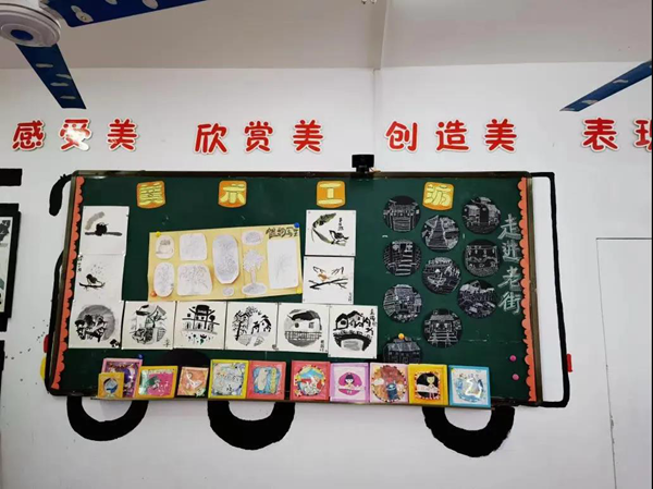 在美術教室中,老師向我們介紹道:長涂中心小學的美術雕刻是獨具特色的,在美術老師王晶的指導引領下,學校師生板雕創(chuàng)作正如火如荼進行著,該校學生的板雕作品也在市、縣里多次獲獎。近年來,學校也將簡單的泡沫板雕刻改為難度系數更高的硬板雕刻,作品內容也更多元化,包括軍艦、坦克等軍事武器類型。