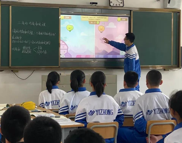 在課程中,來(lái)自遼陽(yáng)市第十一中學(xué)的周英男老師展現(xiàn)了一場(chǎng)生動(dòng)的數(shù)學(xué)課《三角形內(nèi)角和定理》,周老師通過(guò)希沃錄播設(shè)備、希沃白板豐富的學(xué)科工具以及課堂互動(dòng)工具讓遼陽(yáng)一中學(xué)生與額敏縣六中學(xué)生同頻答題、同頻游戲,活躍的課堂氛圍讓相距千里的學(xué)生們,如同置身同一堂課,生動(dòng)的互動(dòng)教學(xué)也讓學(xué)生們對(duì)本節(jié)課內(nèi)容理解的更加深刻。