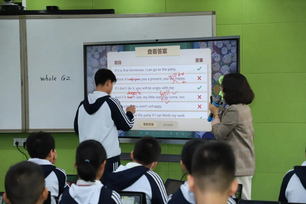以英語展示課為例,上課教師利用希沃易課堂這一智能教學工具,開啟了別開生面的新時代英語教學。在課前,老師通過希沃易課堂下發了預習內容,可謂“有備而來”。課中,老師利用希沃易課堂高效地統計、展示學生答題情況,推送互動性強的交互課件讓學生更深度地參與到課堂中,更多的時間交給學生進行探究學習,讓40分鐘的課堂時間變得更高效,更具趣味性。課后,希沃易課堂還能搜集學生的學情和老師的教研數據,并以數據、圖表形式及時反饋,幫助老師更有針對性地優化教學設計,提升教學質量。