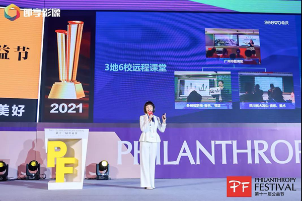希沃教育研究院院長胡婷玉出席了公益節,并以“遠程課堂,為鄉村教育創造更多可能”為主題發表了演講。她提到,希沃公益行走過6個年頭,一直在不斷改變和升級,一步步從改善鄉村教育環境走向硬件提升和軟性建設一齊發力,到2021成長為捐贈設備、教師培訓、組團幫扶遠程課堂建設三線并行……希沃,一直在為教育均衡而努力著。