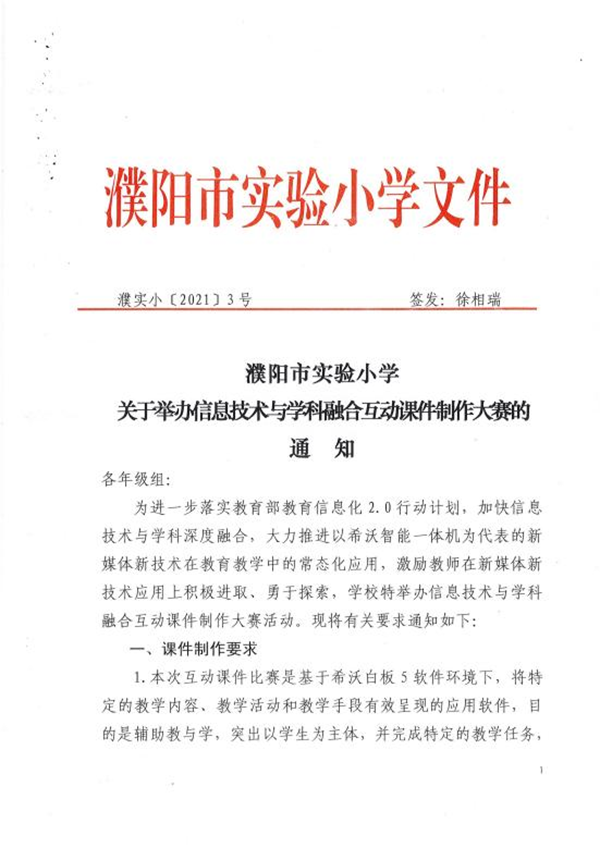 2019年學(xué)校成為河南省教師信息技術(shù)能力提升2.0項目試點校,學(xué)校結(jié)合基本發(fā)展實際,制定整校推進研修模式,聯(lián)合希沃公司開展以希沃白板應(yīng)用為主的混合學(xué)習(xí)環(huán)境的應(yīng)用培訓(xùn),并每年舉辦希沃杯互動課件大賽和微課制作大賽活動。