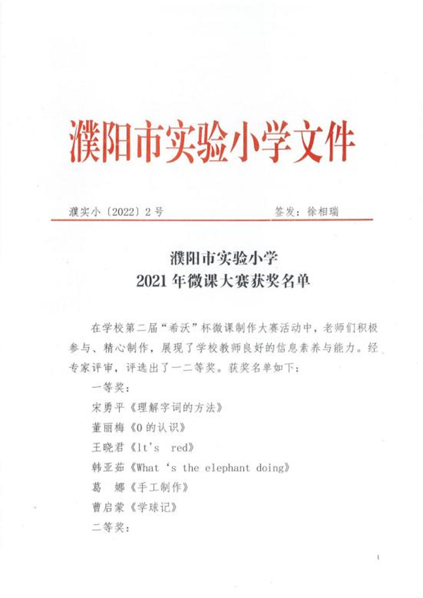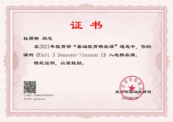培訓(xùn)活動結(jié)束后,濮陽市實驗小學(xué)揭曉了2021年度教育部基礎(chǔ)教育精品課評選,學(xué)校青年教師杜雨晴以其扎實的信息素養(yǎng)和良好的教學(xué)能力,作為濮陽市直學(xué)校唯一代表入圍了國家級評選并榮獲教育部精品課。