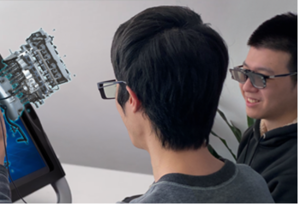 希沃AR教學(xué)方案的核心產(chǎn)品是MR眼鏡,當(dāng)學(xué)生戴上眼鏡,即可到達(dá)強(qiáng)臨場感,并實(shí)現(xiàn)新穎高效的交互,在職業(yè)教育應(yīng)用場景中適用于互動學(xué)習(xí)、實(shí)操練習(xí)。配合內(nèi)容資源,方案滿足天文學(xué)、博物館學(xué)、工業(yè)巡檢等專業(yè)的實(shí)驗(yàn)實(shí)訓(xùn)教學(xué)。