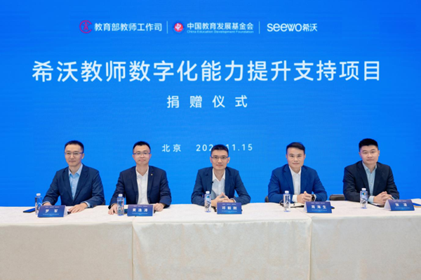 數(shù)字引領(lǐng)未來,強(qiáng)師成就教育。11月15日,希沃教師數(shù)字化能力提升支持項(xiàng)目捐贈儀式在京舉行。教育部黨組成員、副部長鄭富芝、教育部教師工作司司長任友群、中國教育發(fā)展基金會秘書長王建光、廣州視睿電子科技有限公司(希沃)董事長鄧毅剛等出席儀式。