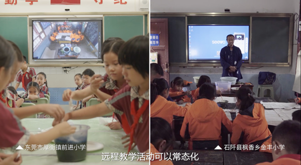 2022年,希沃繼續推動廣州--黔南--大涼山3個地區學校搭建常態化遠程“千里課堂”,上半年,“希沃公益行”為貴州3所學校捐建遠程錄播教室,并邀請荔灣區青少年宮教師去實地推進童聲合唱的教育協作,組建鄉村童聲合唱團。