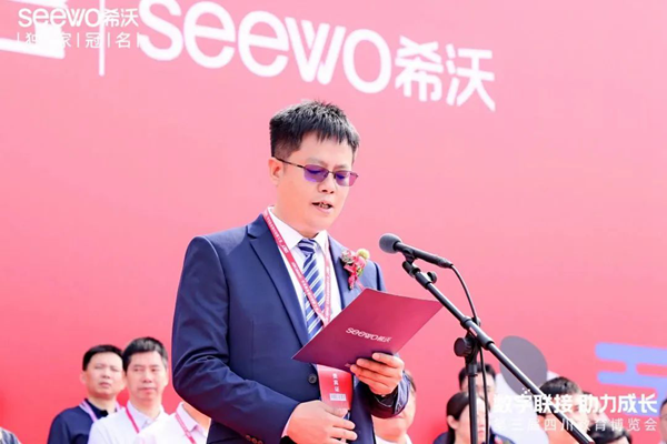四川教育博覽會是由四川省教育裝備行業協會主辦的行業盛會,作為本次展會的獨家冠名商,視源股份希沃未來教育集團四川營銷平臺總經理胡鵠飛出席展會開幕現場,向全體參展人員發表致辭。
