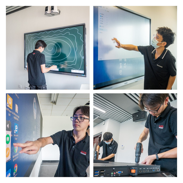 一聲令下,從西域梨城庫爾勒,到極東雪城牡丹江,北至黑河,南及三亞,希沃分布在全國各地的技術(shù)支持小分隊整裝待發(fā),背上工具包,奔赴百城千校,為上萬臺設(shè)備進行檢修保養(yǎng)工作。
