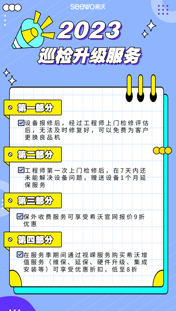 本年度巡檢活動7-9月服務季期間,希沃服務重磅推出了升級服務。
