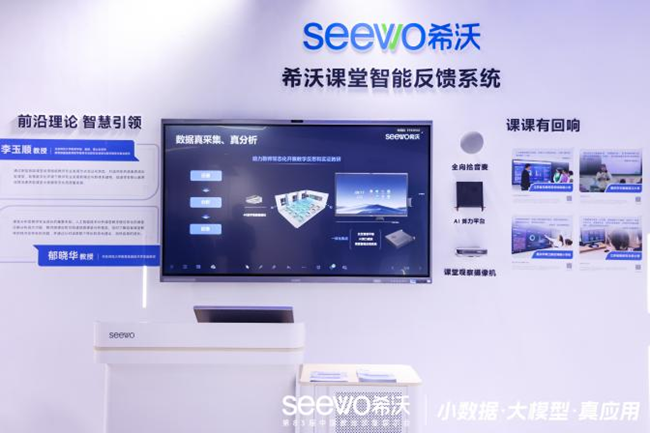 在本次展會上,希沃全新推出的智慧教室解決方案吸引了現(xiàn)場觀眾的駐足體驗。其中,全新AI教學終端——希沃第七代交互智能平板配備了行業(yè)內(nèi)首創(chuàng)AI四目攝像頭*,搭載希沃自研教學大模型以及專屬的AI算力芯片,結(jié)合課堂智能反饋系統(tǒng),從而實現(xiàn)對教室全景的覆蓋,以及更精準、更及時、更有效的課堂反饋。為教師提供課堂反饋、學情分析等功能,精準賦能教師教學與教研,幫助教師成長。