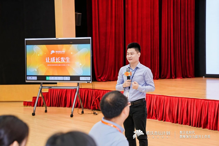 隨后,希沃杏壇計劃主理人梁杰向在場教師,詳細介紹了希沃杏壇計劃的設立起源及發(fā)展現(xiàn)狀,并進一步講解了與華南師范大學達成的產學研合作項目,及教師能力“杏壇導師八力模型”,其中,提及了學習力、信息力、設計力、分析力、教學力、協(xié)作力、指導力和領導力共八項專業(yè)能力。教師指導力、協(xié)作力,是引領教師團隊發(fā)展的重要維度。此次研修活動中將以教師領導力作為培訓目標,對教師指導力與協(xié)作力進行考察,助力教師回歸教師隊伍后,帶領更多教師成長,激發(fā)教師隊伍活力,切實發(fā)揮“以師育師”的作用。