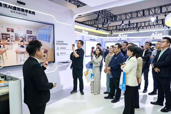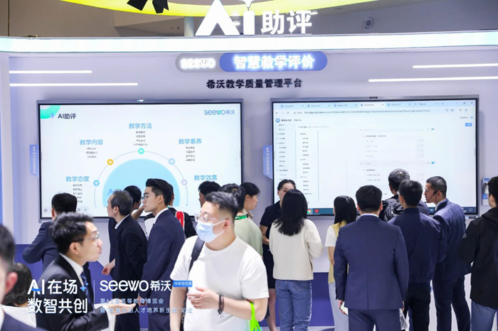 AI智創教,讓創意知識無縫鏈接。希沃未來教學空間引發現場關注,全景智能設備以及希沃品課2.0軟件的組合,支持跨校、跨班、跨空間、跨場景的多模式混合授課,兼具多端口鏈接、多渠道資料調動功能以及多樣教學互動研討工具,讓師生協作無阻礙、創意表達無限制。