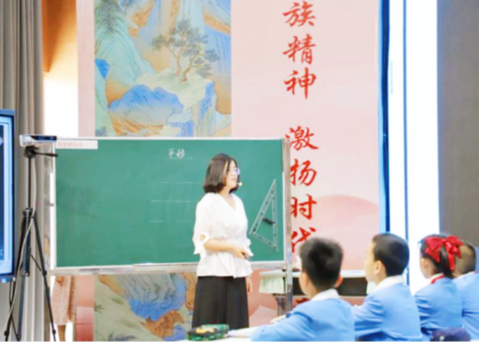 課例二:《平移》(執教者:銀川市二十一小學湖畔分校-盧海香):創設“古建筑平移保護”真實情境,通過希沃白板5軟件中大雄寶殿平移視頻、古亭及船樓平移方案設計等任務鏈,引導學生掌握平移要素(方向、距離)及“關鍵點→對應點→連線”的規范作圖方法,強化空間觀念與應用能力。