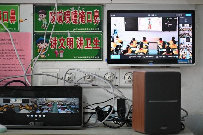 下午的活動場地轉移至內江市東興區實驗小學,進入了實踐觀摩與經驗交流環節。十一節覆蓋各學段、各學科的優質智慧課例同步展示,每節課不僅由優秀教師現場授課,還配備了專家即時點評,并組織觀課教師研討,形成了“授課-點評-議課”的教研閉環。
