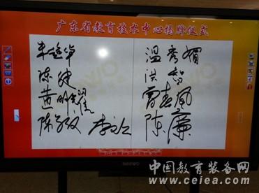 廣東省教育技術(shù)中心由原廣東省教育信息中心和原廣東省電化教育館合并而成,主要職能是參與制訂、實施全省教育信息化發(fā)展規(guī)劃,組織開展相關(guān)研究和培訓;指導全省教育網(wǎng)站網(wǎng)校、信息化設(shè)施的建設(shè)。在揭牌儀式上,彭紅光主任代表中心發(fā)表了熱情洋溢的講話,表明了在教育信息化深入的背景下,成立教育技術(shù)中心的意義和其未來肩負的使命。揭牌儀式后,各位代表集體合影并在朱超華副廳長的帶領(lǐng)下紛紛駐足為本次會議特別提供的希沃交互智能平板前進行簽名留念,希沃交互智能平板的簽名軟件將各位代表的墨寶紛紛保存下來,記錄廣東省教育信息化發(fā)展進程。
