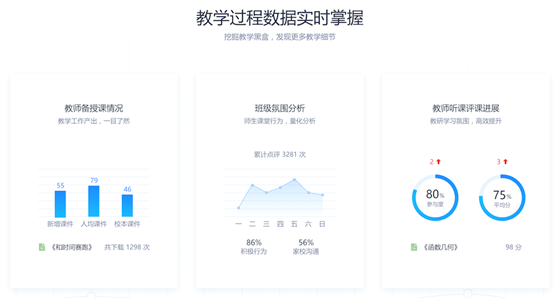 在教育裝備行業內,“促進師生共同全面發展”這個學校的核心工作很少被關注到,業內常見的多是從結果去設計產品和應用,比如學生成績分析的應用方案,比如學生的健康體檢應用方案等等,卻忽略了師生成長發展提升其實過程非常重要。我們要給老師“指路子、出點子、給位子“,如果只知道結果,通過單一成績結果來評價老師,其實這是缺失過程細節,也是缺失改進方向的,而這樣又怎能給老師“指路子、出點子”,又怎么談得上以教師為本呢?