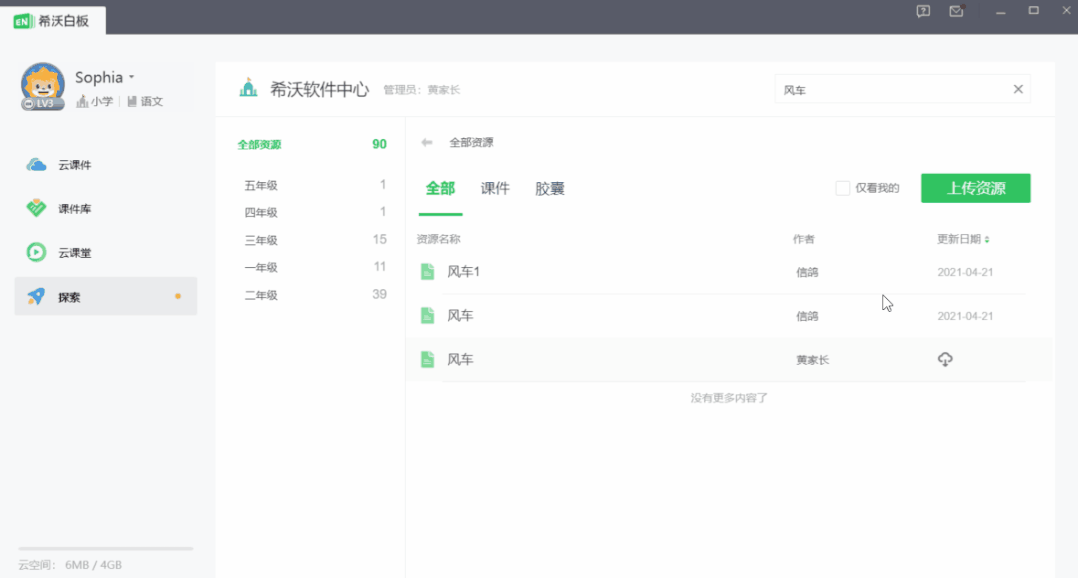 老師可以通過資源目錄找到對應資源,點擊課件或膠囊名稱,即可在線預覽