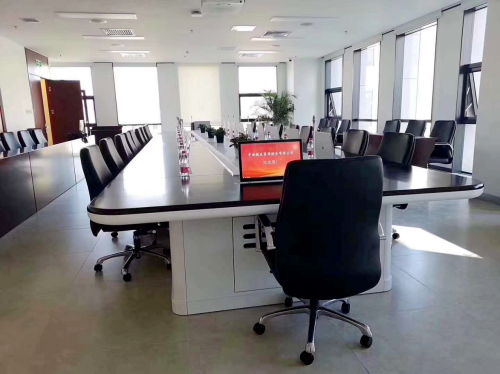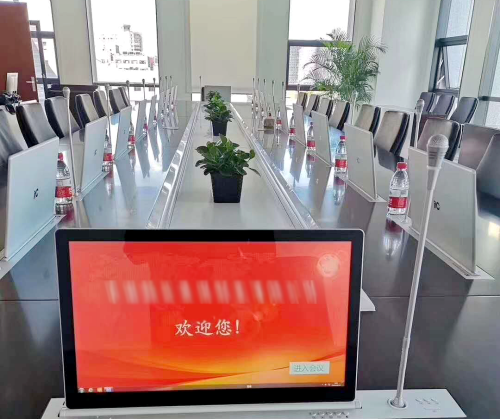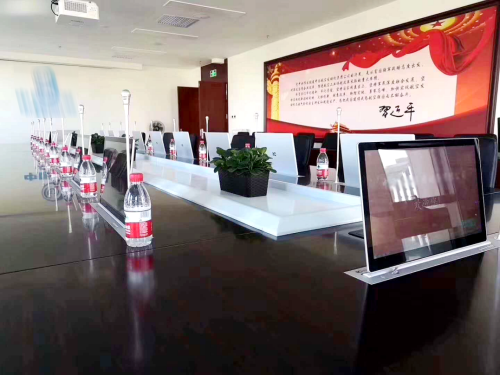 itc為該會議室設(shè)計的智能交互式無紙化會議系統(tǒng)采用了17.3英寸觸控超薄高清顯示屏,擁有麥克風一體化升降器,整套系統(tǒng)具有功能豐富、界面簡潔直觀、操作便捷、穩(wěn)定可靠等特點,能夠幫助會議組織者極大地降低工作壓力,輕松進行會議現(xiàn)場管控,提高與會者的開會效率,同時節(jié)省大量資料印刷費用和投影設(shè)備,完全符合國家低碳、環(huán)保理念。