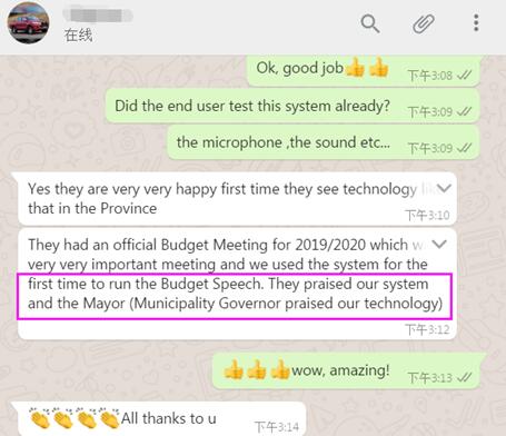itc高質(zhì)量的產(chǎn)品及優(yōu)秀的服務(wù)得到了客戶及該市市長高度贊揚,為政府開啟大型會議奠定了堅實的設(shè)備基礎(chǔ),感謝客戶對itc的選擇與支持,我們將再接再厲,以更好的產(chǎn)品和服務(wù)反饋給客戶。