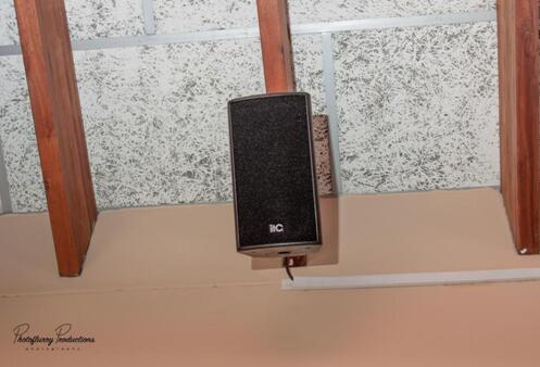 專業(yè)擴(kuò)聲系統(tǒng)為會場提供清晰的人聲還原音質(zhì)
